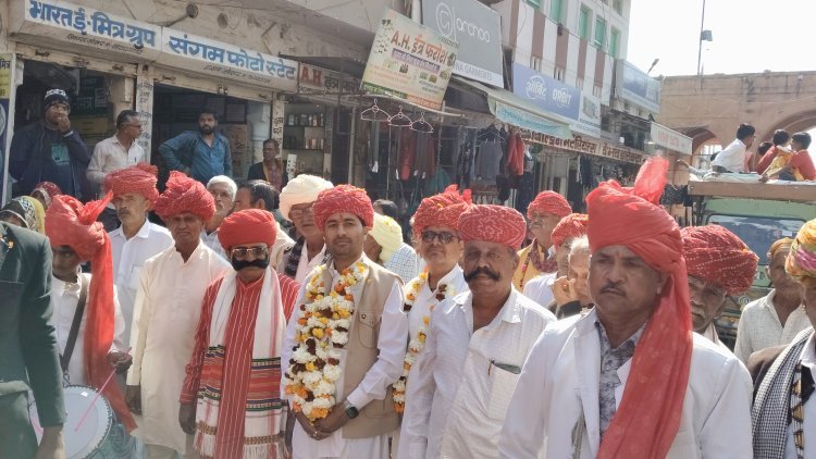सोजत। मेहंदी नगरी सोजत में चौधरी समाज द्वारा माही बीज के पावन अवसर पर मंगलवार को शहर में भव्य शोभायात्रा निकाली गई। यह शोभायात्रा धूमधाम के साथ महेश्वरियों की बगीची से शुरू हुई और बैंड-बाजों, घोड़ों तथा पारंपरिक गैर नृत्य के साथ आगे बढ़ी। इसमें आई माताजी के जयकारे लगाते हुए समाज बंधु राजपोल दरवाजा, सिनेमा हाल तिराया सब्जी मंडी व मुख्य बाजार से होते हुए चौधरियों की बागची पहुंचे। शोभायात्रा के दौरान समाज के सदस्य पारंपरिक वेशभूषा में उत्साहपूर्वक नाचते-गाते नजर आए, जिससे पूरा वातावरण श्रद्धा और भक्ति से भर गया। मार्ग में जगह-जगह श्रद्धालुओं ने पुष्पवर्षा कर शोभायात्रा का गर्मजोशी से स्वागत किया।