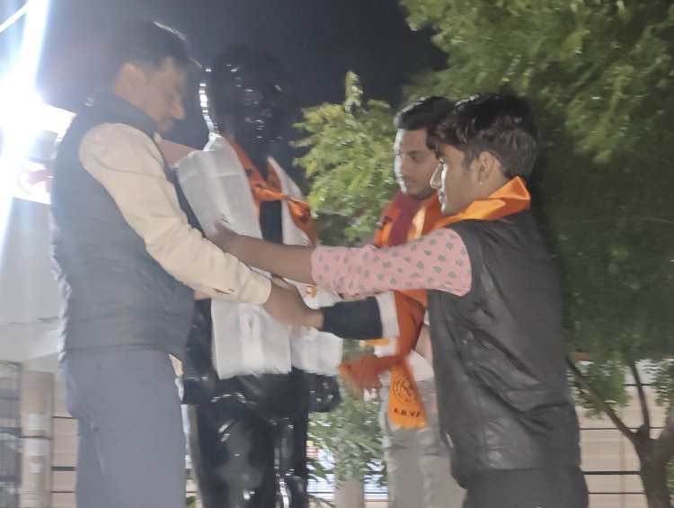 सोजत। वेदान्त के विख्यात और प्रभावशाली आध्यात्मिक गुरु। अमेरिका स्थित शिकागो में सन् 1893 में आयोजित विश्व पंथ महासभा में भारत की ओर से सनातन धर्म का प्रतिनिधित्व करने वाले स्वामी विवेकानंद के जन्मोत्सव पर मनाएं जा रहे सप्ताह के तहत अखिल भारतीय विद्यार्थी परिषद सोजत नगर इकाई द्वारा राजकीय स्नातकोत्तर महाविद्यालय सोजत में सृजनोत्सव युवा सप्ताह 2026 के अंतर्गत स्वामी विवेकानंद जी की प्रतिमा पर दुग्धाभिषेक, माल्यार्पण व दीपप्रज्ज्वलन का कार्यक्रम सम्पन्न हुआ जिसमें नगराध्यक्ष नवल किशोर, नगरमंत्री हितेश राठौड़ के साथ अन्य कई कार्यकर्ता उपस्थित रहे।