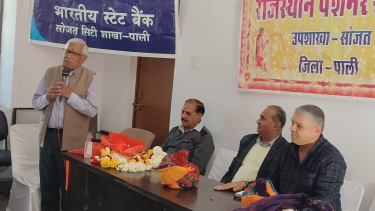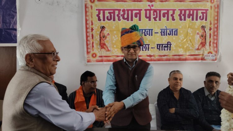 अध्यक्षता कर रहे भामाशाह अनोपसिंह लखावत ने कहा कि सोजत पेंशनर्स उपशाखा न केवल पेशनर्स को ही लाभान्वित कर रही है बल्कि सामाजिक सरोकारों एवं परोपकारों के कायों में भी अग्रणी है उन्होंने पेंशनर्स के लिए हर पखवाड़े स्वास्थ्य जांच शिविर आयोजित करने का सुझाव दिया। डा वासुदेव सांखला ने कहा कि पेंशनर्स समाज के अभिन्न अंग है जो समाज को सशक्त बनाने एवं राष्ट्र की आधारशिला को मजबूत बनाने में सदैव अग्रणी रहते है। इस मौके पेंशनर्स समाज सोजत उपशाखा अध्यक्ष लालचंद मोयल ने प्रतिवेदन प्रस्तुत करते हुए पेंशनर्स समाज उपशाखा सोजत द्वारा सामाजिक सरोकारों के क्षेत्र में किए गए कार्यों की जानकारी दी तथा स्वागत भाषण दिया। वहीं सचिव रामस्वरूप भटनागर ने पेंशनर्स समाज के इतिहास पर प्रकाश डाला चेतन व्यास ने समाज में बढती हुई विकृतियो तथा भटकते हुए युवाओं को सही दिशा दिखाने के लिए पेंशनर्स का आह्वान किया। कार्यक्रम में बार एसोसिएशन अध्यक्ष देवेंद्र व्यास, सत्य नारायण सेन एसबीआई शाखा प्रबंधक भरत मीणा, सीबीईईओ दलपत सिंह सांखला, एसीबीईईओ बगदा राम आदि अतिथियों का साफा एवं माला पहनाकर स्वागत किया गया। नायब तहसीलदार से तहसीलदार के रूप में पदोन्नत होने वाले दिलीप सिंह राठौड़ का नागरिक अभिनंदन किया गया। कार्यक्रम का सरस संचालन राम स्वरूप भटनागर एवं चेतन व्यास ने किया।
