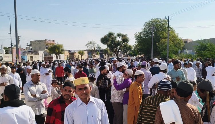 हिंदू मुस्लिम भाइयों ने एक दूसरे के गले मिलकर दी ईद की मुबारकबाद