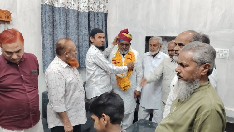 सोजत। मेहंदी नगरी सोजत से पवित्र हज यात्रा मक्का मदीना पर जा रहे यात्रियों के स्वागत के लिए ठेकेदार मोहम्मद साजिद टांक के आवास पर स्वागत समारोह आयोजित किया गया। जिसमें हज पर जा रहे यात्री हाजी अब्दुल रज्जाक कुरेशी का साफा व माला पहनाकर व हाजन गुलशन बानो को माला पहनाकर उनका सम्मान किया गया व हज सफ़र की कामयाबी के लिए दुआएं की गई। इस अवसर पर आल इंडिया हज वेलफेयर सोसायटी जिलाध्यक्ष अब्दुल समद राही, केशियर अनवर पठान, अब्दुल गनी ताजक, भाजपा अल्पसंख्यक जिला महामंत्री अब्दुल रशीद पप्सा सिलावट, मोहम्मद नासिर चौहान, अब्दुल सत्तार घोसी, असलम मिस्त्री, ठेकेदार मोहम्मद मनसूर, एस मोहम्मद टांक, ठेकेदार माजिद, सलीम नियारघर, यूसुफ ताजक, मोहम्मद रियाज कुरेशी मोहम्मद याकूब ताजक आदि कई गणमान्य जन उपस्थित थे।