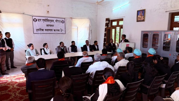 सोजत। बार एसोसिएशन सोजत के सभागार में नवीन कार्यकारिणी द्वारा स्नेह मिलन समारोह का आयोजन किया गया जिसमें अपर जिला न्यायाधीश महोदय दिनेश गढ़वाल अपर मुख्य न्यायिक मजिस्ट्रेट साधना सिंह, न्यायिक मजिस्ट्रेट शिवदान चौधरी एवं अतिरिक्त न्यायिक मजिस्ट्रेट महोदय अनुराधा दाधीच बार एसोसिएशन अध्यक्ष देवेंद्र व्यास की गरिमाई उपस्थिति रही साथ ही बार एसोसिएशन सोजत के उपाध्यक्ष घेवर राम गहलोत, सचिव जितेंद्र परिहार , सहसचिव राहुल सिंघाड़िया , कोषाध्यक्ष पुनीत दवे , पुस्तकालय सचिव सचिन ईचरसा एवं समस्त वरिष्ठ श्रेष्ठ अधिवक्ता उपस्थित रहे ।